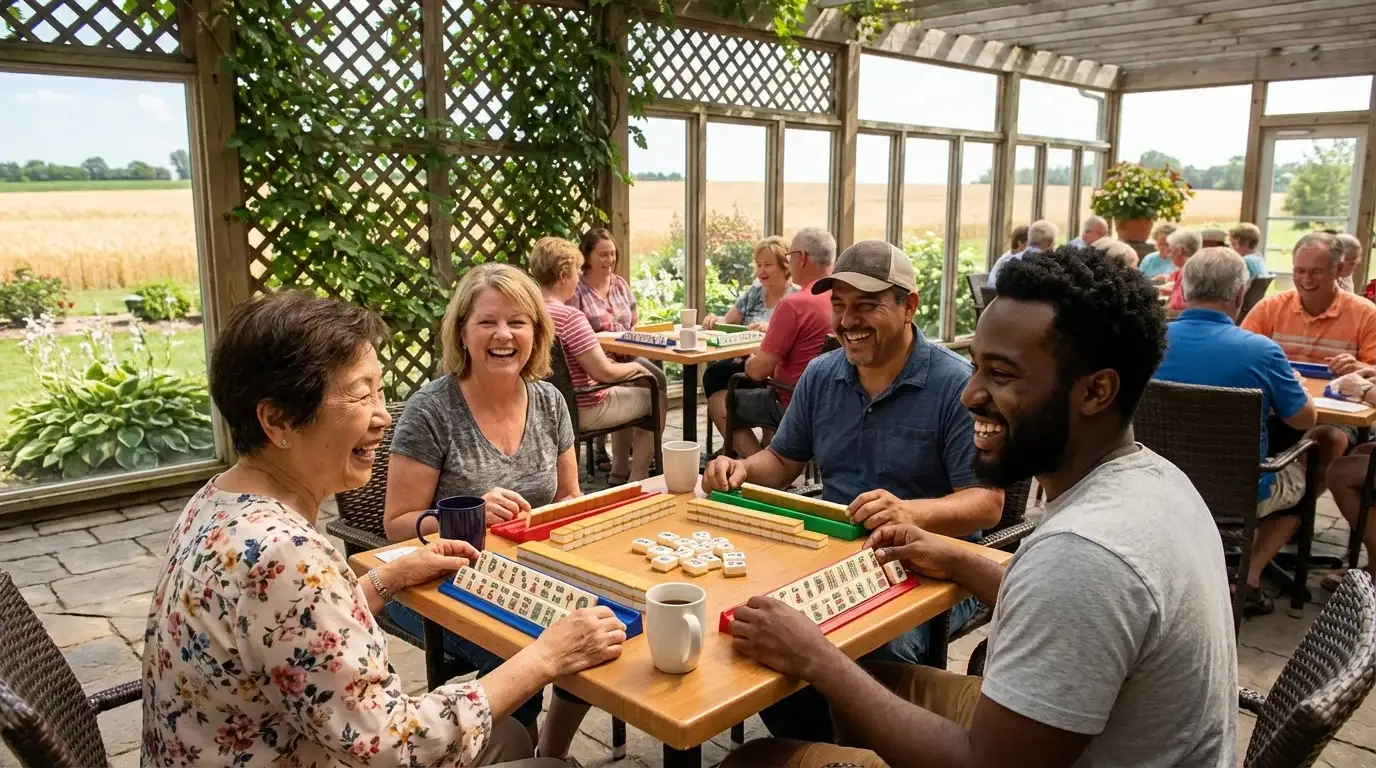 Hamilton County mahjong is characterized by a high degree of mentorship and community bonding rather than cutthroat competition. With a population of under 15,000, games serve as vital social anchors where neighbors focus on preserving the craft of the game and welcoming newcomers into the fold.