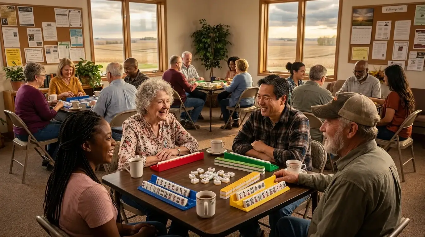 Given the county's deeply rooted farming heritage, mahjong sessions often shift seasonally to accommodate the demands of planting and harvest cycles. During the quieter winter months on the Iowa plains, indoor gatherings flourish as a vital social outlet, providing a warm communal space to practice strategy while the fields lie fallow.