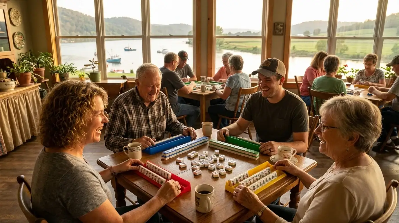 The mahjong scene here is characterized by the close-knit, hospitable culture typical of Appalachian river communities where the emphasis is on social bonding over intense competition. It is common for matches to be accompanied by potluck-style refreshments, reflecting a distinctive regional preference for integrating long-standing neighborly traditions into the flow of more modern tabletop gaming.