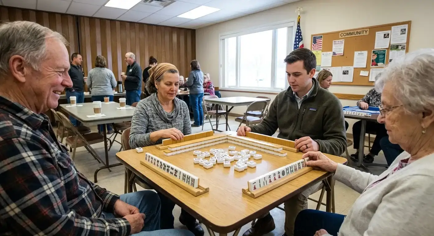 While the core rules follow standard American or National Mah Jongg League formats, the local culture emphasizes the 'Kaffeeklatsch' tradition of socializing over coffee and snacks. Participants should expect a high degree of table talk and community bonding, reflecting the friendly, hospitality-focused nature of Western Wisconsin's historic immigrant populations.