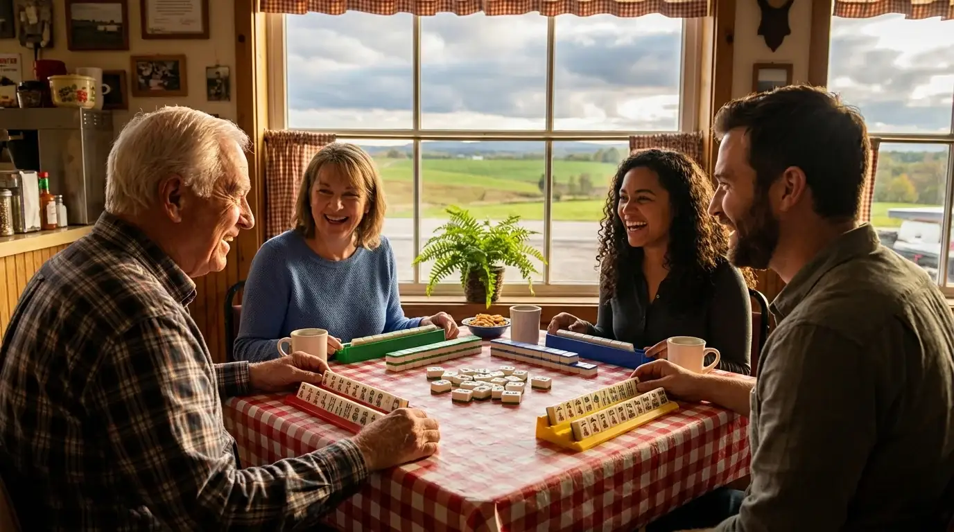 Because the unglaciated terrain of Southwest Wisconsin can make winter travel challenging, many players organize localized home rotations rather than traveling to a central hub. This creates a very intimate and neighborly atmosphere where small-town connections define the community's playstyle. While large-scale tournaments are rare, the decentralized nature of these local circles ensures that mahjong remains a staple of social life across the county's rolling hills.